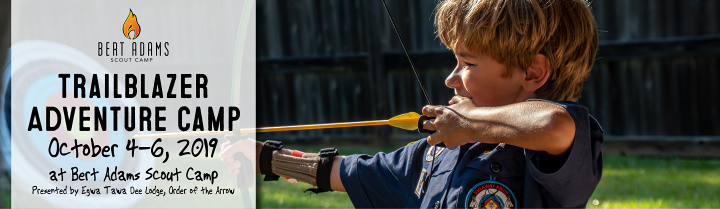 Trailblazer Adventure Camp is a day full of fun for Cub Scouts and their families this Fall at Bert Adams Scout Camp. The members of the Order of the Arrow invite you to attend an exciting and fun-filled weekend including BBs, archery, games and more. Learn Native American History and join us in the dance ring. Learn how to cast a fishing rod. Bring your best skits and join us for a campfire Saturday evening.